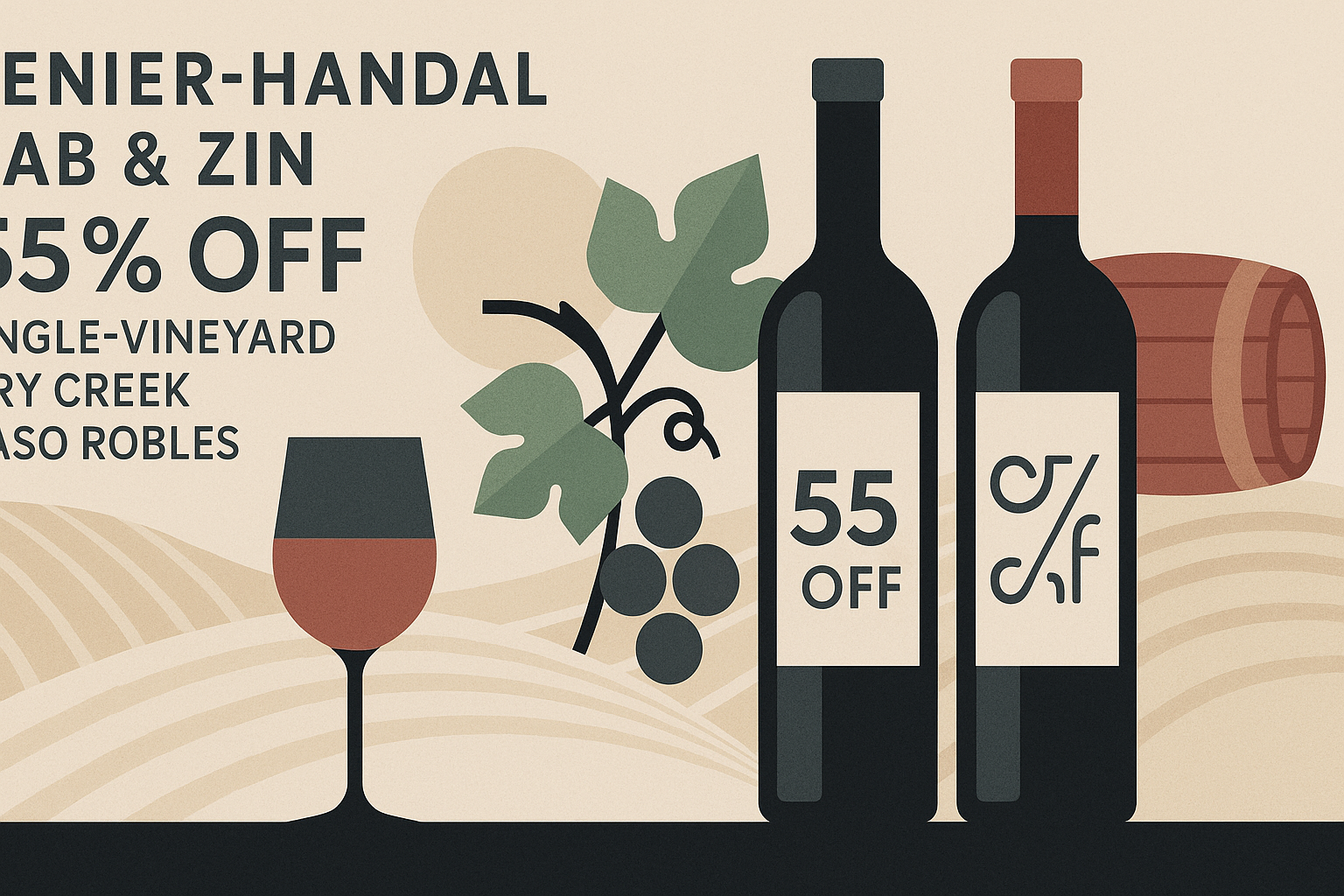 If you like your wine deals with actual substance—single-vineyard fruit, serious aging, and legit scores—Reverse Wine Snob just dropped a two-for-one that’s hard to ignore. The 4-pack bundles two bottles of 2018 Denier-Handal Dry Creek Valley Cabernet Sauvignon (94+ points) and two bottles of 2020 Denier-Handal Paso Robles Zinfandel (92–93 points) for $69.95—a 55% discount off the normal pricing. The offer ships to a long list of states and runs through 1/18/2026 at midnight PT. Hydrate, then hurry.
